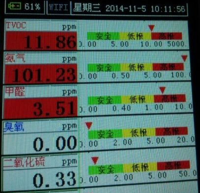 1、下圖是儀器通上101ppm的氨氣,請(qǐng)注意TVOC的濃度值。TVOC顯示11.86ppm。這和準(zhǔn)確度有什么關(guān)系呢?請(qǐng)看第2張圖解答真相。