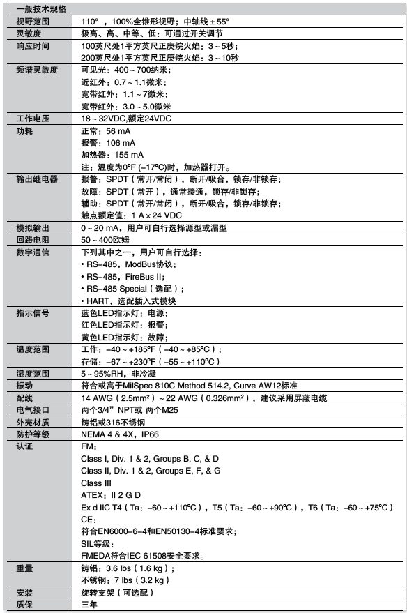 ? 可在各種環(huán)境條件下檢測碳氫化合物和非碳氫化合物燃料火焰;