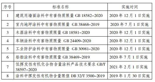 2019年-2020年,國家建筑用墻面涂料、木器涂料、車輛涂料、工業(yè)防護涂料等6項強制性涂料產(chǎn)品標準發(fā)布,2020年將全面實施。推薦性國家標準《低揮發(fā)性有機化合物含量涂料產(chǎn)品技術(shù)要求》(GB/T 38597-2020)發(fā)布,首次對“低VOCs含量涂料”有了較為科學的定義,將有力推進涂料行業(yè)的低VOCs含量涂料替代進程。