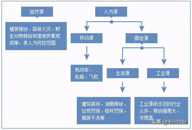 VOCs人為源包括移動源和固定源,固定源中又包括生活源和工業(yè)源等。移動源是指汽車、輪船、飛機(jī)等各種交通運(yùn)輸工具的排放。生活源VOCs排放對象復(fù)雜,包括建筑裝飾、油煙排放、垃圾焚燒、秸稈焚燒、服裝干洗等等。