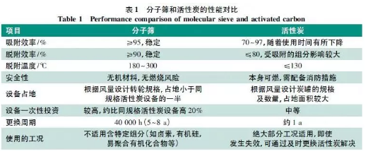 表1 為分子篩和活性炭的性能對比。