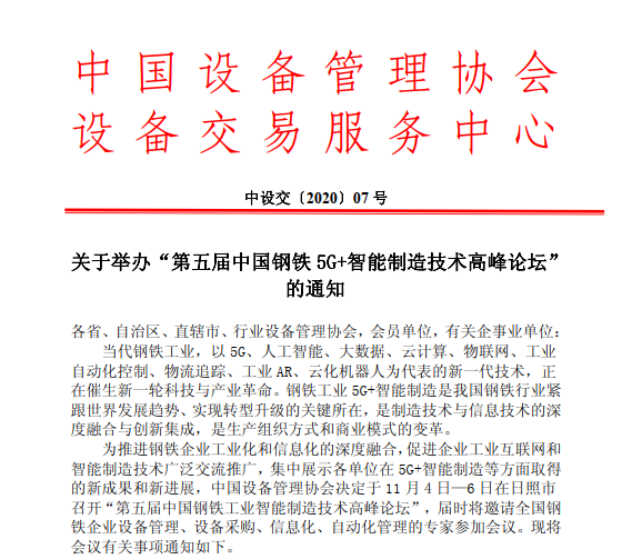 【參會(huì)信息】第五屆中國鋼鐵5G+智能制造技術(shù)高峰論壇