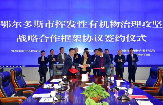 3日,鄂爾多斯市揮發(fā)性有機(jī)物治理攻堅(jiān)戰(zhàn)略合作框架簽約儀式。攝影/章軻