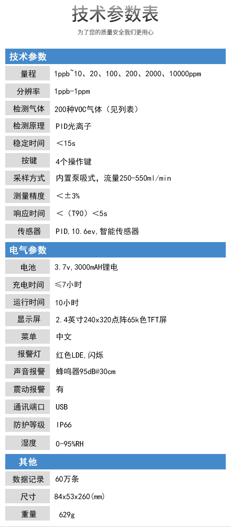 200種VOC氣體(見列表) |