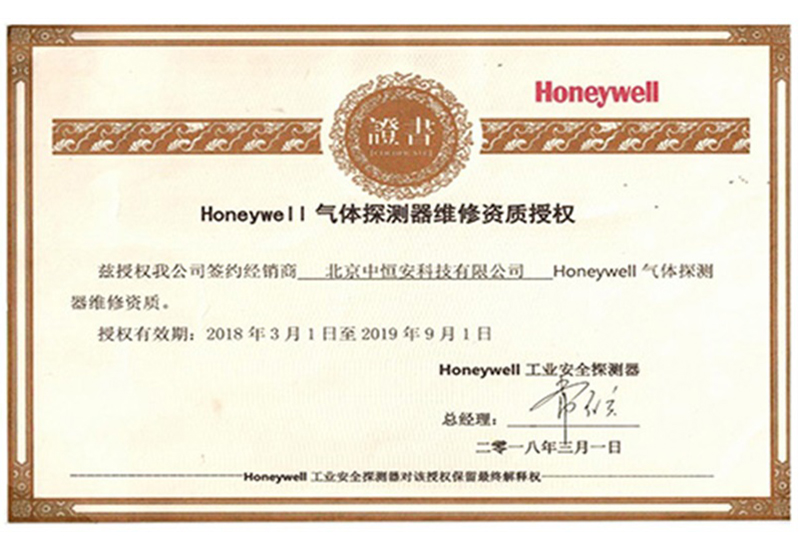 霍尼韋爾氣體探測器維修資質(zhì)授權(quán)書